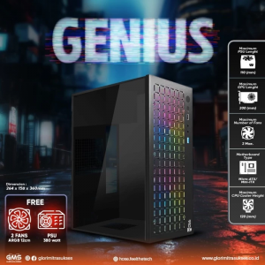 CASING HOSE GENIUS - Mid Tower mATX Case (Free 2x RGB Fan + PSU 380w)