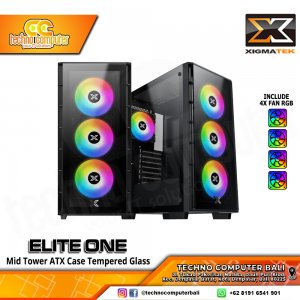 CASING XIGMATEK ELITE ONE Black - Mid Tower ATX Case Tempered Glass (Free 4x RGB Fan)